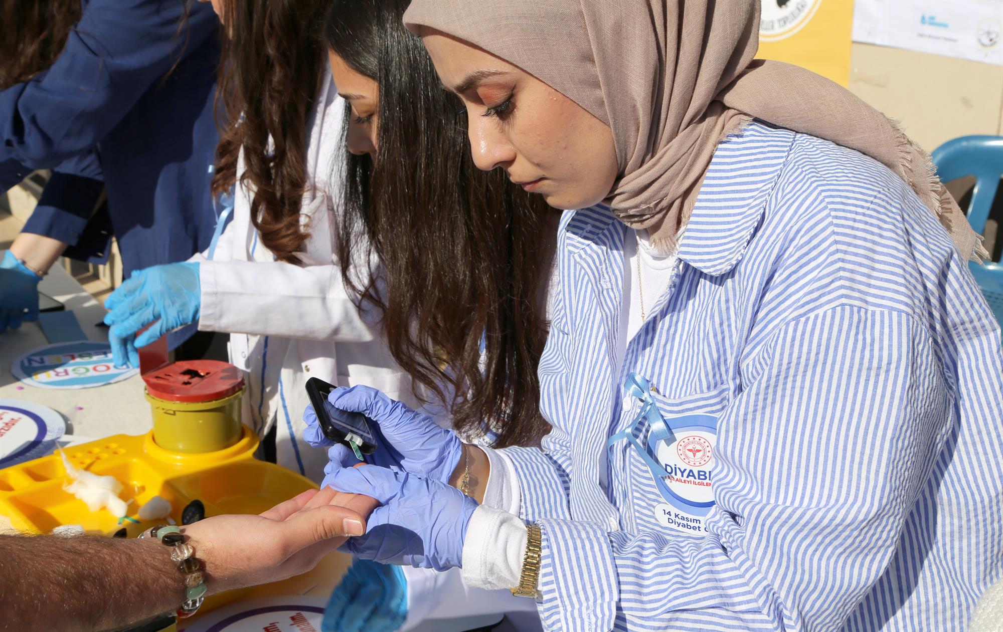 Siirt İl Sağlık Müdürlüğü'nün büyük katkılarıyla kurulan özel stantta, katılımcılar kan glikoz seviyelerini ücretsiz ölçtürme imkanı buldu.